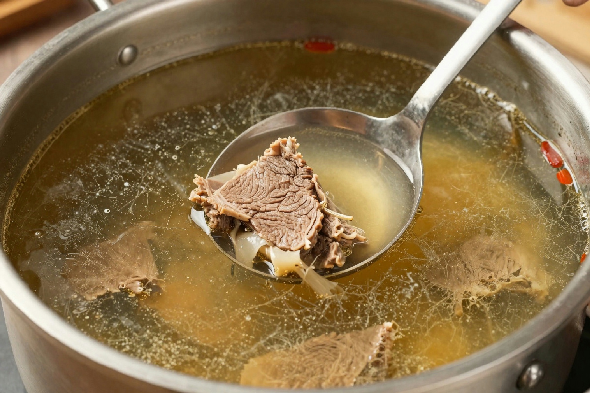 Il trucco per un brodo di carne limpido e profumato: schiumalo regolarmente durante la cottura